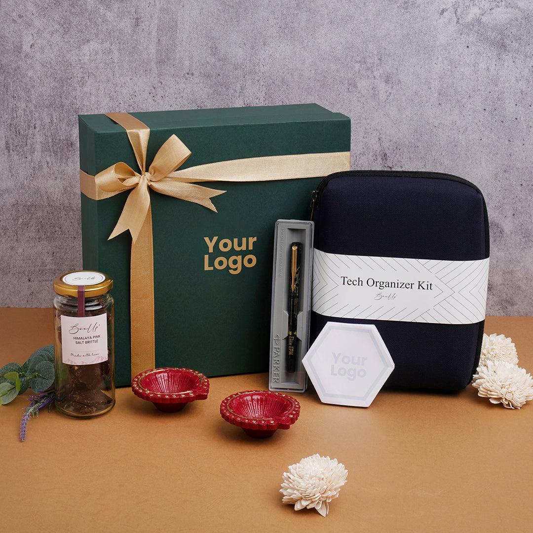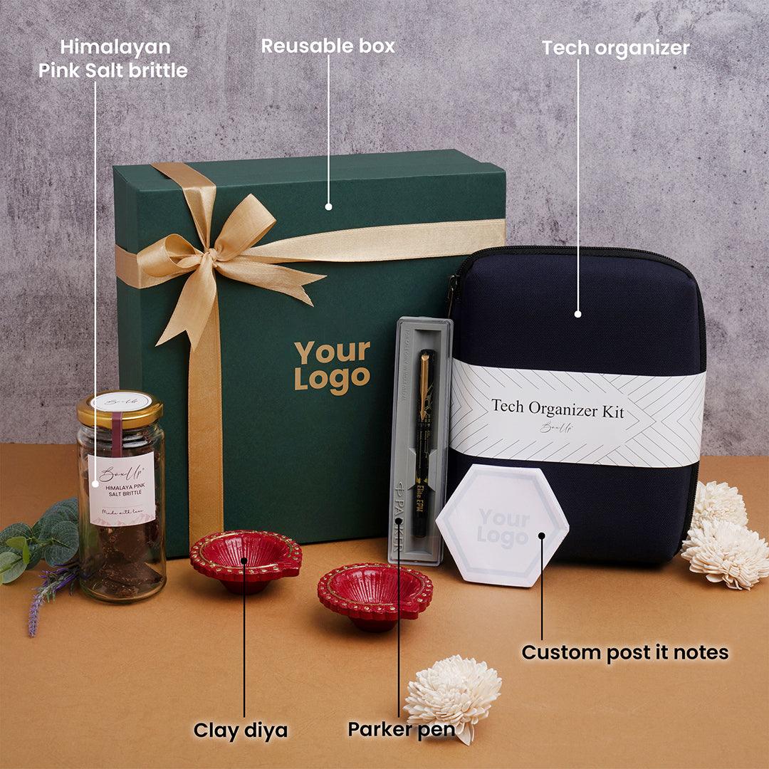 A hamper that subtly reflects the festive spirit of corporate Diwali gifts for employees while remaining elegant, understated, and practical—perfect for celebrating Diwali with your clients, employees, or coworkers! With easy customization options, you can leave your brand logo subtly without grabbing too much attention too!