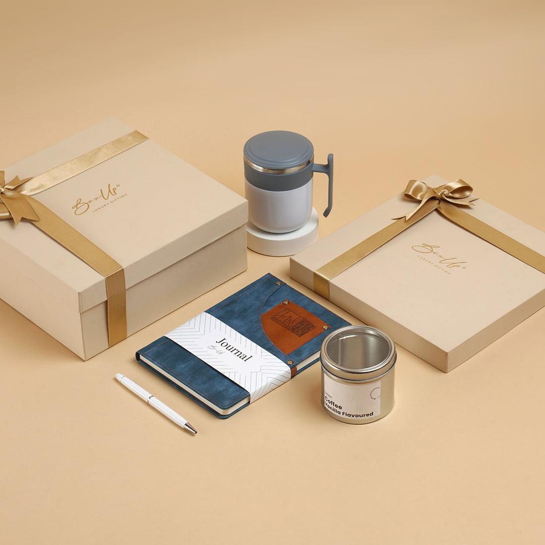 This hamper is perfect for the office as it preps the employees for all the important meetings! Brew a warm batch of heavenly Vanilla flavored coffee, have it in a mug with a lid, and then prep for the meeting by taking notes down in the denim-covered notebook. Keep your employees alert and caffeinated with this hamper.