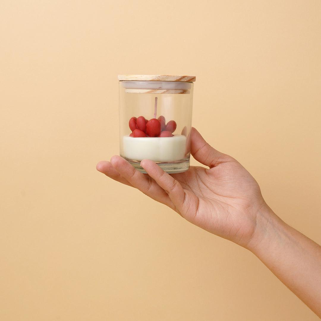 Handmade with careful attention to detailing, this charming candle comes with a wax flower nestled in its centre.