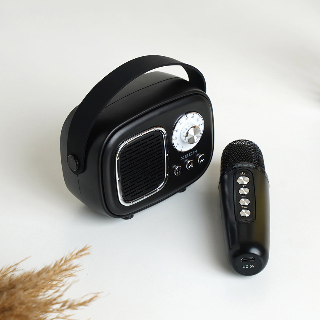 Amp up the spirits for your next event with this portable and compact karaoke kit, complete with Bluetooth connectivity and a mike.