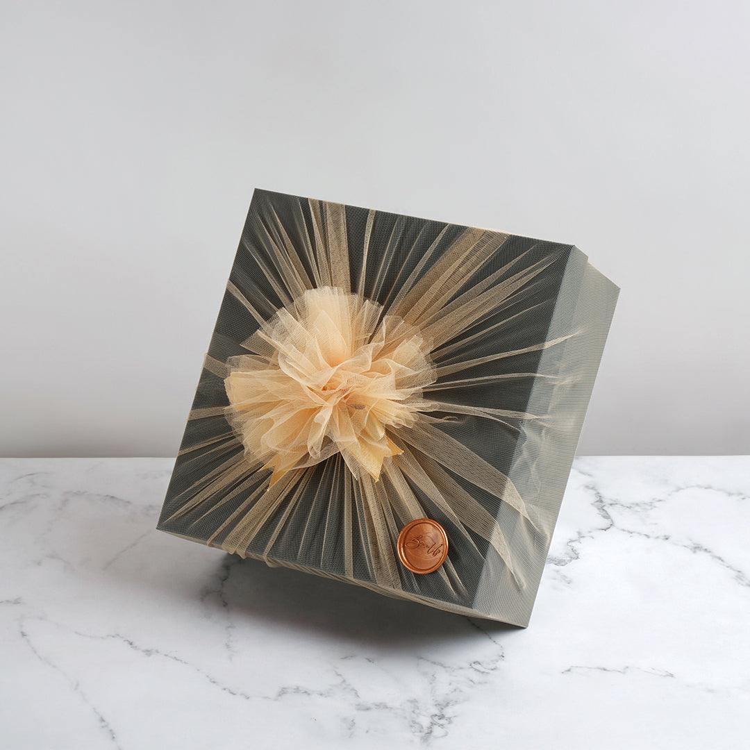 Elevate the packaging of your gift hamper with our exclusive net packing! Your gift hamper will be carefully covered in a delicate layer of net and tied off with a ribbon to give a unique unboxing experience!