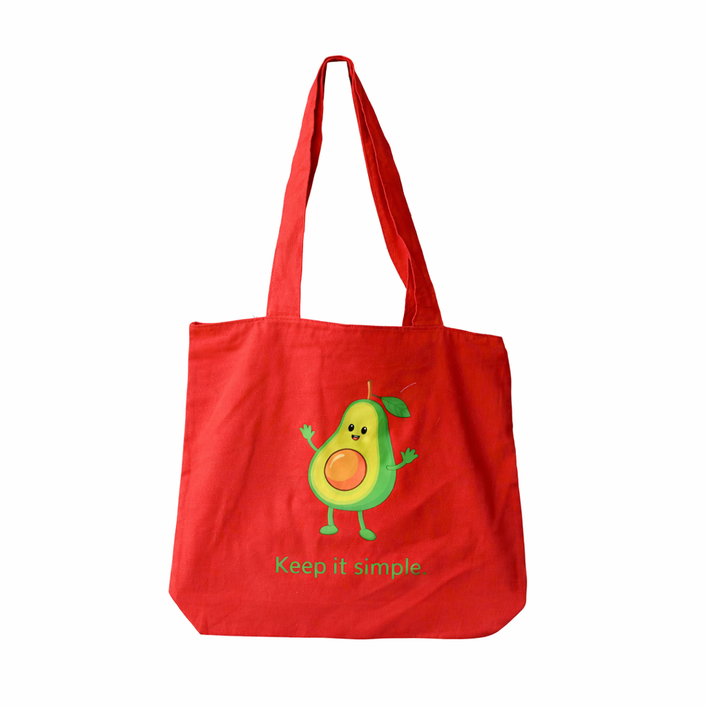 Upgrade your everyday style with this vibrant Red Avocado Canvas Tote Bag, designed for fashion, functionality, and sustainability. Featuring a cute smiling avocado graphic with the inspirational quote “Keep It Simple”, this tote adds a playful and modern touch to your daily essentials.