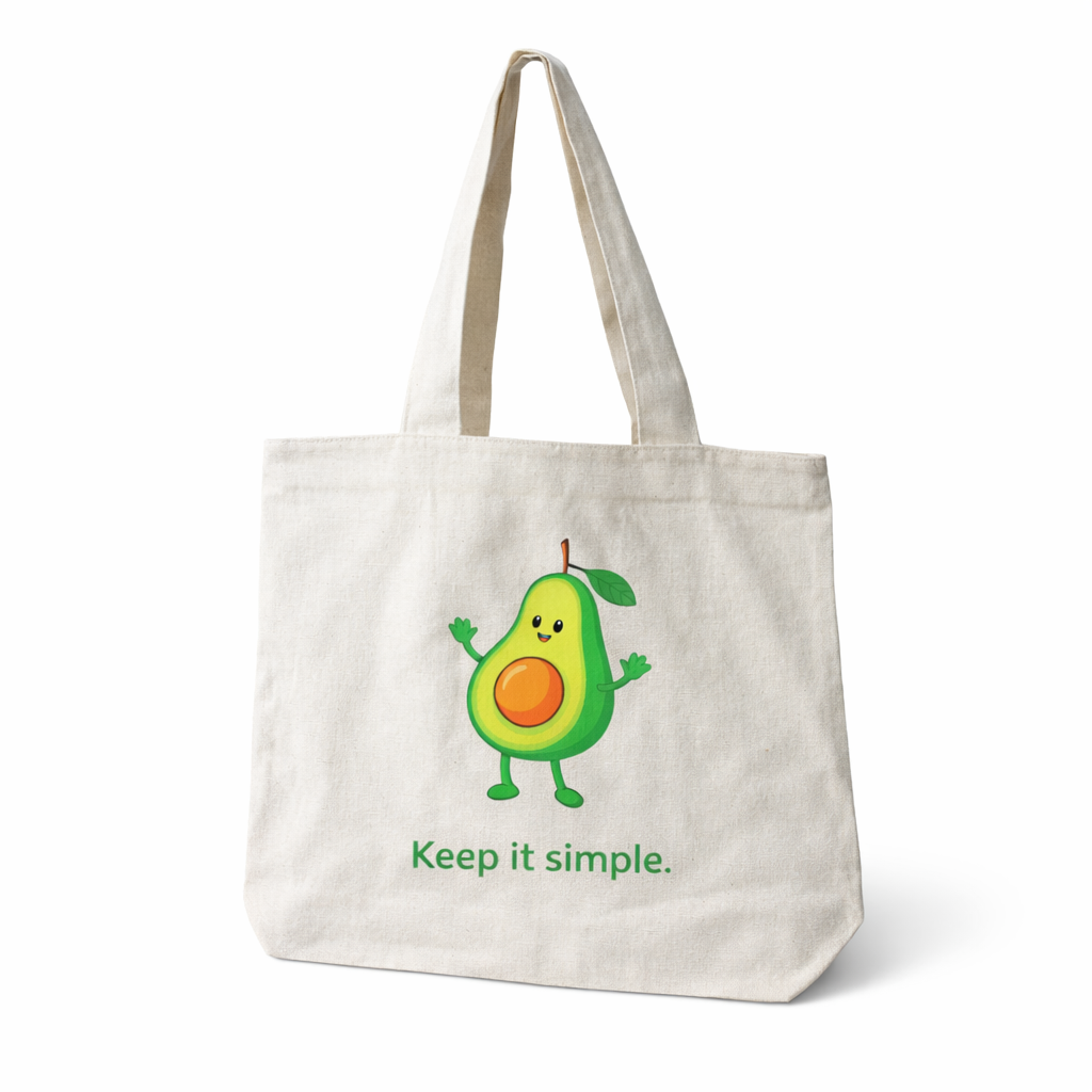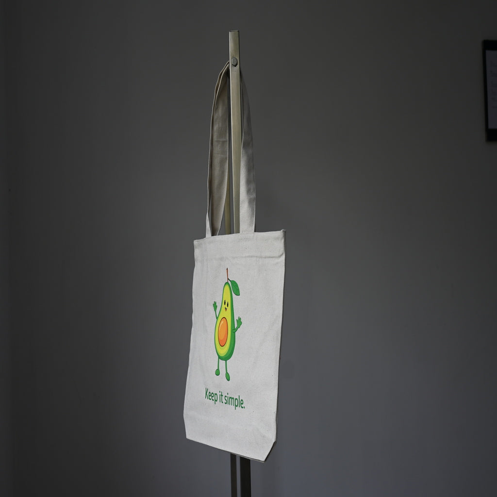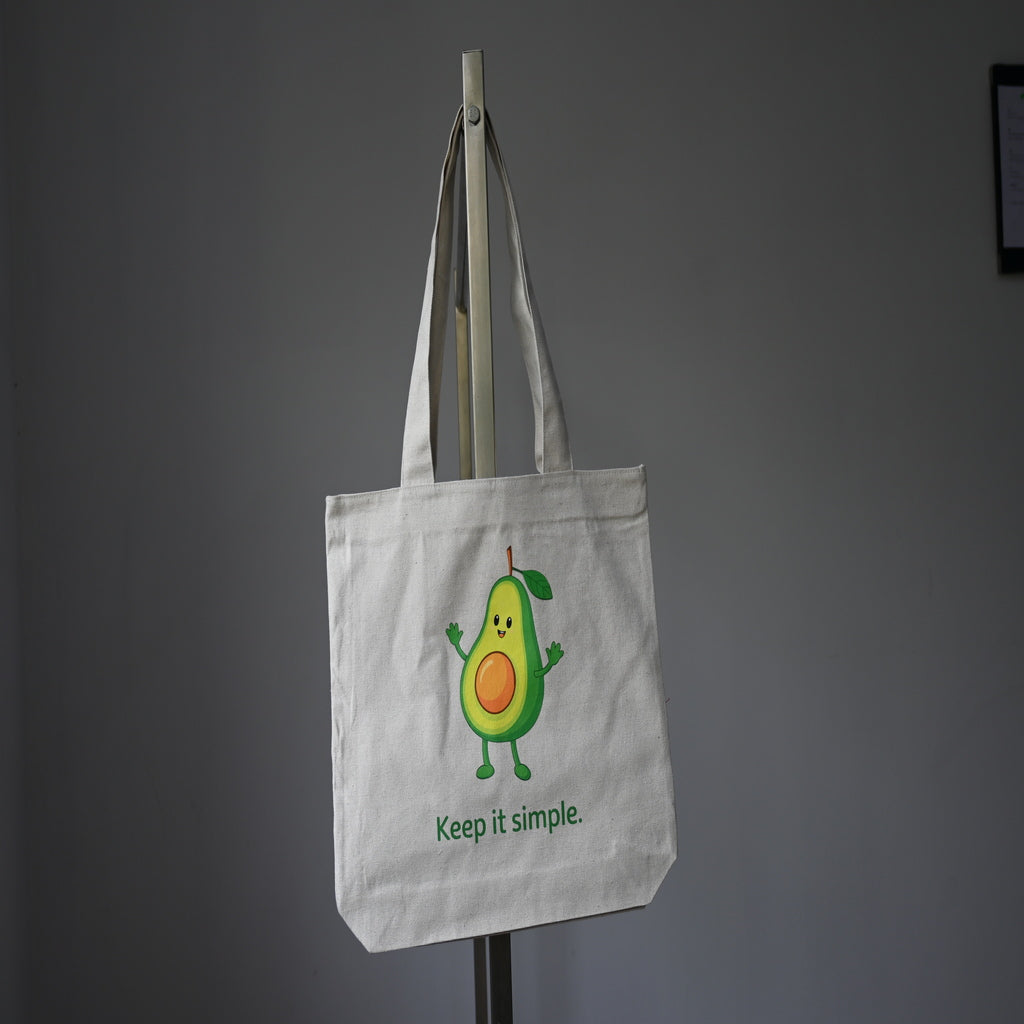 Keep your style fresh and minimal with this charming Natural Canvas Avocado Tote Bag featuring a happy avocado design and the motivational quote “Keep It Simple.” The soft off-white canvas background enhances the vibrant green artwork, giving it a clean, aesthetic look perfect for daily use.